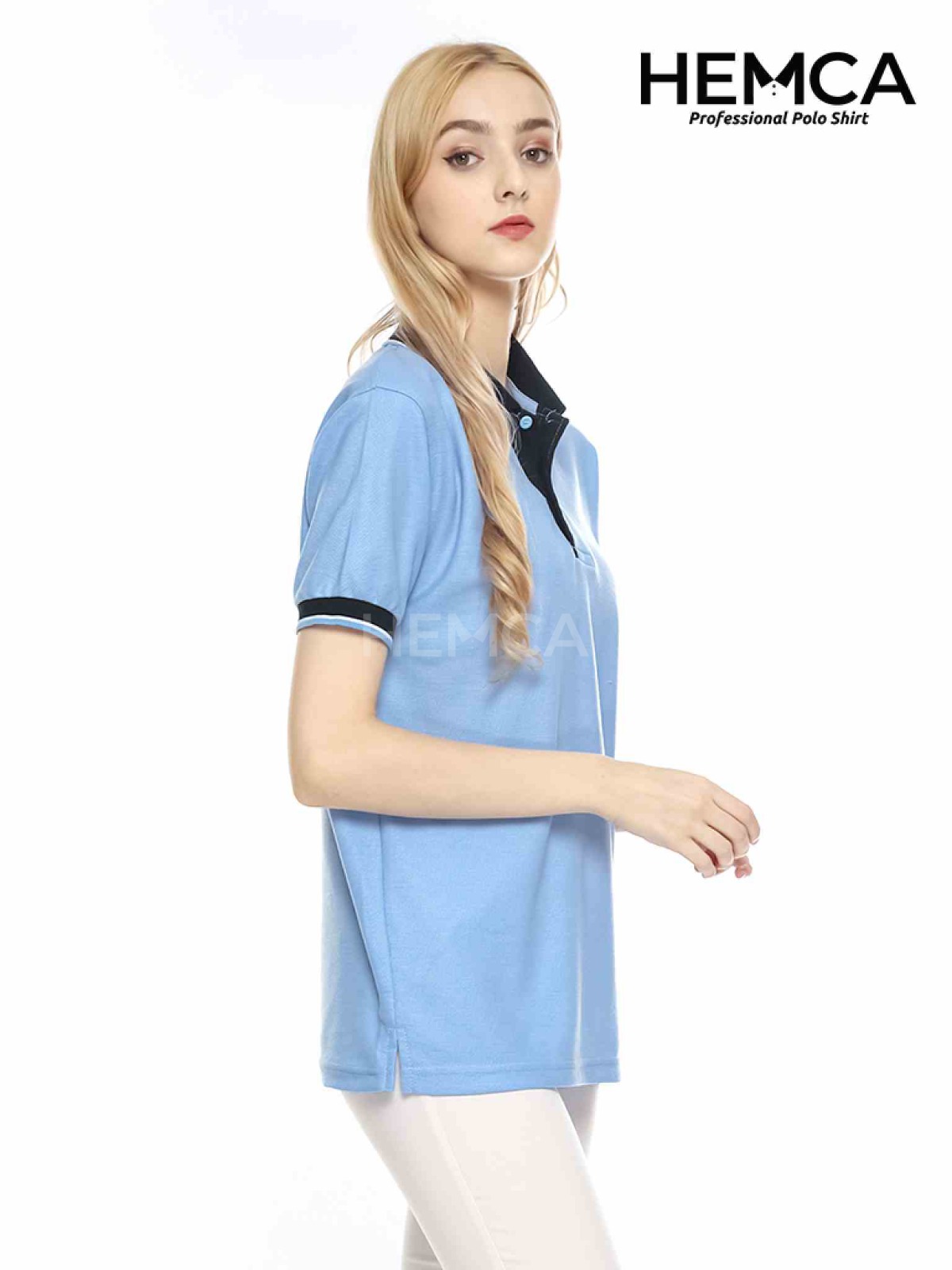 Polo Kombinasi Biru Muda